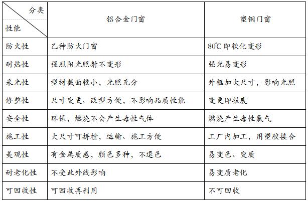 那么,究竟鋁合金門窗的優(yōu)勢(shì)在哪里呢?現(xiàn)在,我們就來綜合對(duì)比一下鋁合金門窗與塑鋼門窗的優(yōu)劣吧: